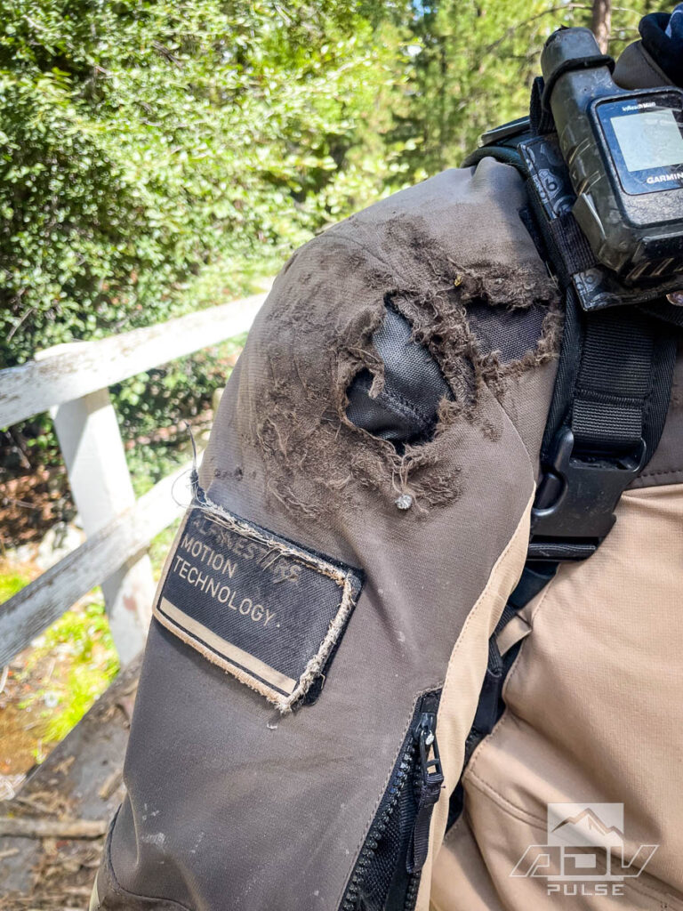 Unfortunately, my AMT-8 suit didn’t get to live out the long life of adventures I’d hoped for. While I did clock thousands of miles over multiple rides, it met a premature end due to a little mishap. Going roughly 40 mph around a bend on a mountain road, I hit a patch of sand that was hidden in the shadows. The front end tucked and I was suddenly on the ground sliding wondering “what the hell just happened?!”. The AMT-8 earned its CE AA safety rating on this day and luckily, I walked away unscathed with no bruising or road rash whatsoever. Unfortunately, the suit was toast.
