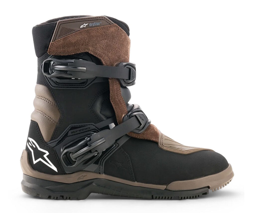 These are medium-height sports/adventure riding boots that incorporate the Alpinestars Drystar waterproof membrane beneath the suede and coated leather upper for all-weather performance. The Belize V2’s new and more robust, quick-release lateral ankle closure system includes durable polymer buckles and a self-aligning memory ratchet with a fixed locking closure for an easier and more precise fit. Equipped with protective technical features for enhanced safety and an exclusive vulcanized rubber sole designed for off-road riding that promises optimal grip on and off the bike. ($339.95)