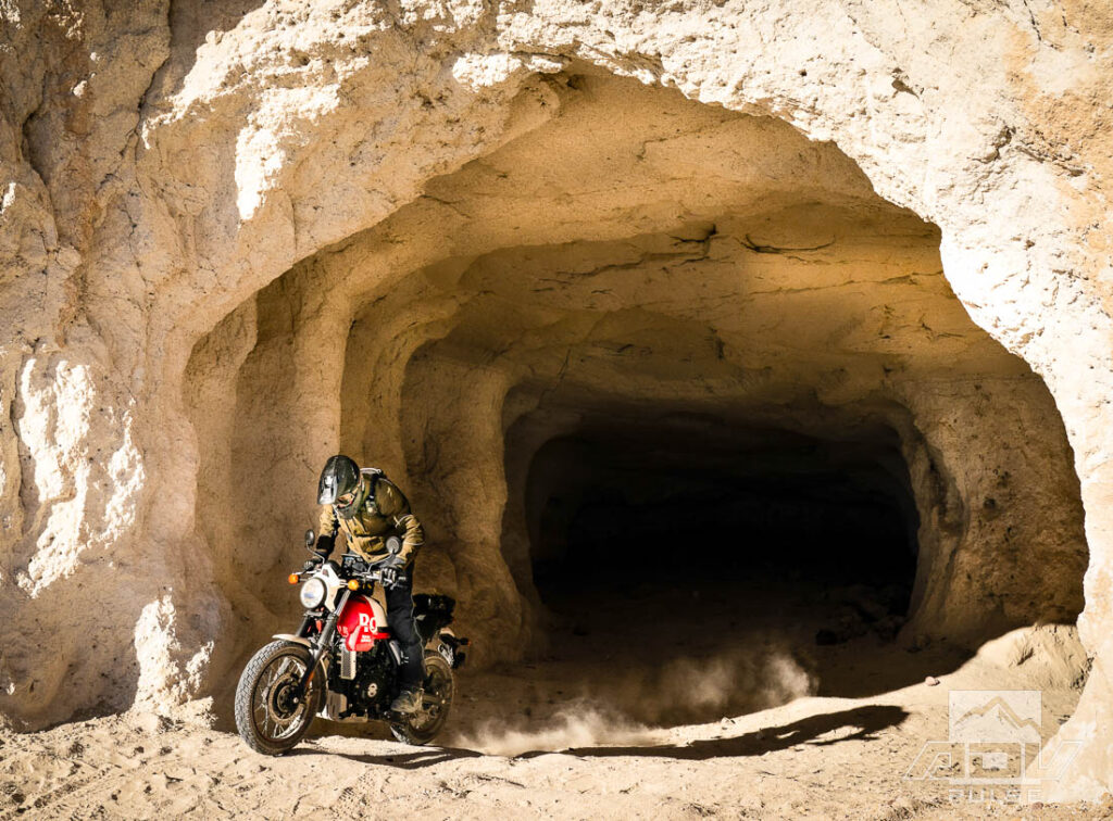 For ADV riders, the appeal lies not only in the history of the mines but in exploring the network of trails in the area. The mines are accessible on either dual-sport or adventure bikes, though you’ll need to be prepared to handle deep sand on the network of trails that wind through desert washes, small canyons and rocky ridges. At least an intermediate level of off-road riding experience is required. For experienced desert riders, the deep sand sections and rocky tracks are manageable on a large machine but be aware these mines are best visited during the cooler months. Summer riding here is punishing, with triple-digit heat and no shade outside the mines themselves.