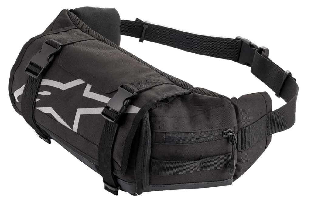 Built from tough 600D polyester and offering a compact 3.7-liter capacity, this pack carries the essentials, think the basic set of tools and handful of trail snacks. Inside, elastic tool loops keep things organized, while a waterproof front pocket and two side pockets make it easy to get to smaller items without digging. You can also slip in a small water bladder to keep hydrated on shorter adventures. The waist-mounted design keeps the load low, close to your core, and completely off your shoulders, which helps balance, and cuts down on strain. Hip packs also tend to bounce less than full-size packs when you’re on the pegs or picking your way through rough sections. The one-size Tech Tool waist pack is available in Black or Gray/Black.