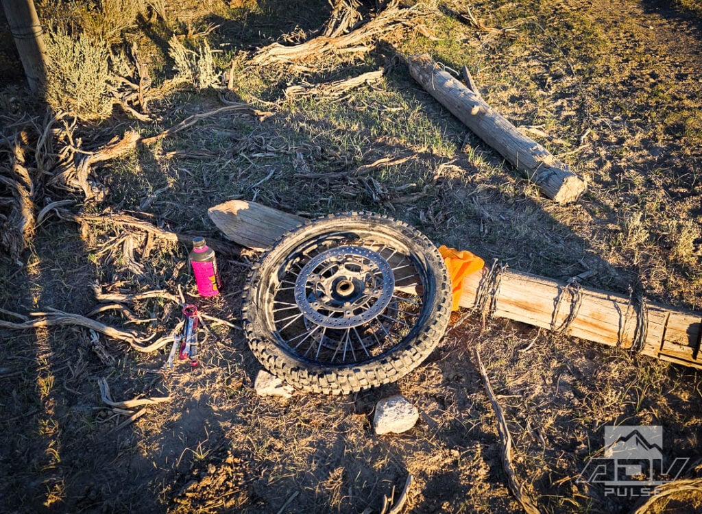Later, I decided to swap bikes with another friend who rides a KTM 690 Enduro. I wanted to see how it compared with the 390 Adventure R I was riding. The additional suspension travel and higher-end componentry was immediately apparent as I blasted through rocks, whoops and crud with ease. Just as I was admiring how good it felt, I suddenly began to notice the unmistakable feeling of a front flat. I tried to get the attention of the two riders just ahead of me as they turned, but they disappeared off in the distance.