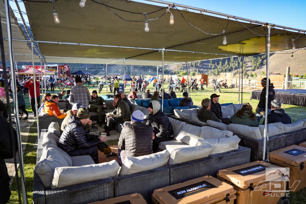 The next morning, Tavo and the rest of the guys were a little slow rising. Tavo had ridden the last 20-mile stretch on a flat front after having struggled with the stiff sidewall on the Tusk 2Track tire during the first flat, and not wanting to go through that again in pitch dark. Carlos’ bike was out for the count as well with the fork issue and no kickstand, so just a few of us headed out for a ride in the morning. Our plan was to go up RailRoad Ridge where aftermarket lighting company Ruby Moto was sponsoring their Ruby Refresh Station meet up at the top of the mountain.