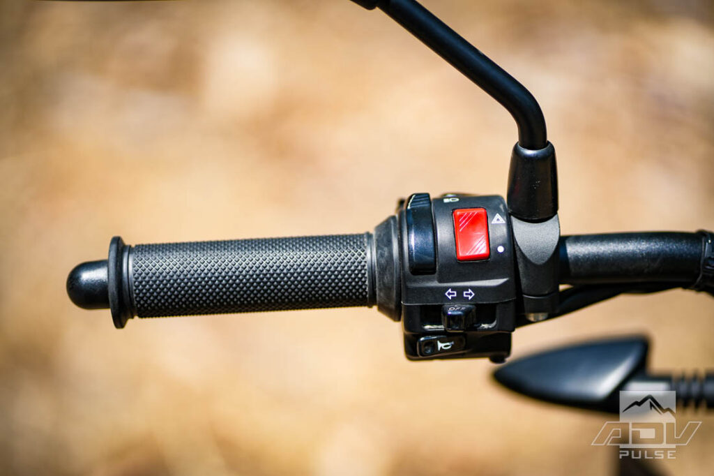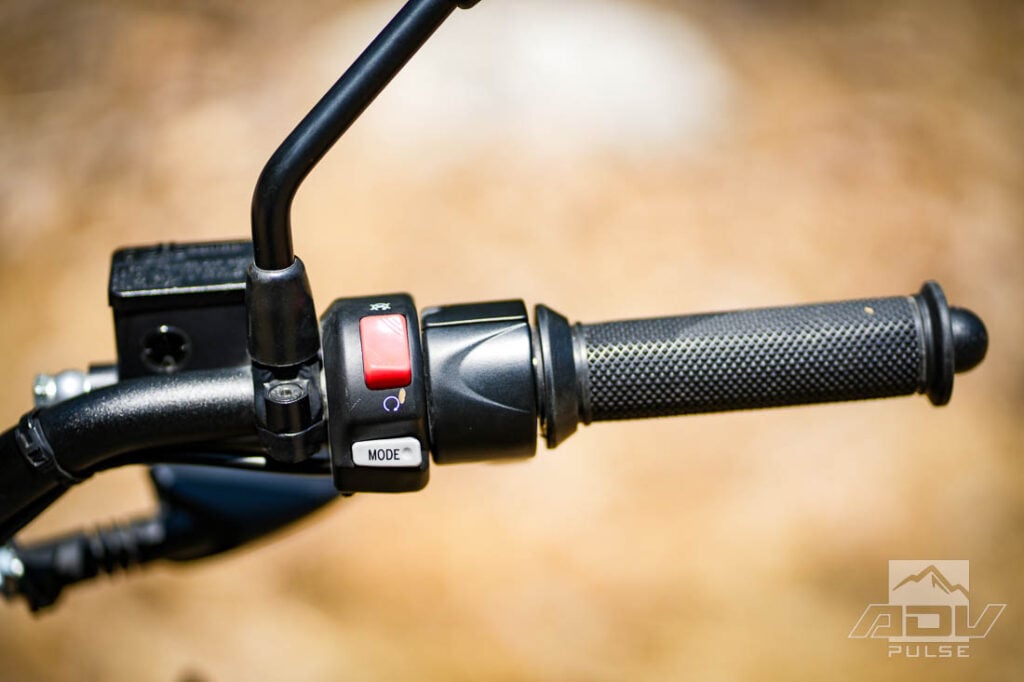 The ABS system works ok for basic trail riding but the system does feel tuned heavily towards the street. On a few occasions when I forgot to turn it off on steep terrain, I found myself freewheeling towards obstacles as the system got overwhelmed. Turning ABS off is not as straightforward as I’d like though. The sequence involves turning the kill switch off, then holding the Mode and Adjust buttons for 4 seconds with the kickstand down. Forget to do any of those four things and it won’t work.