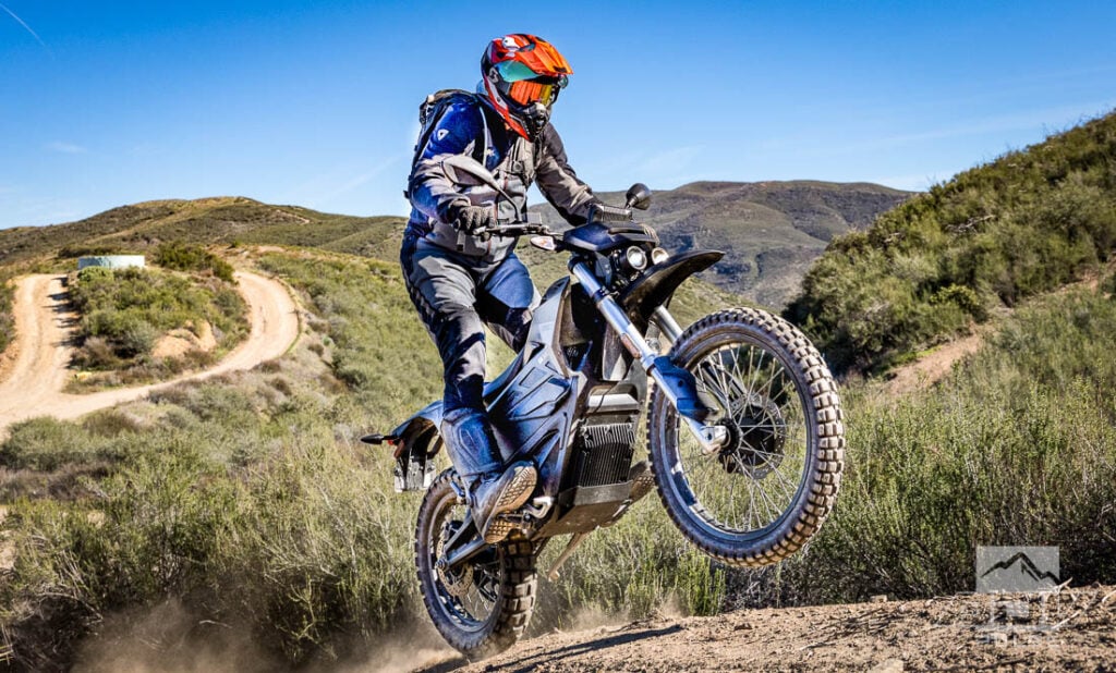 While that was probably the sketchiest section of trail, there were several other challenging tracks I encountered in the Lake Arrowhead OHV area that day, as well as some sweet single track that was a blast to ride the Zero on. Even in the low power mode, you can still pop wheelies and launch off risers because the torque is always there – no need to be in the powerband. The brakes were adequate for steep descents (with ABS deactivated) and didn’t feel grabby or overly sensitive either. However, they’re not the most powerful brakes.